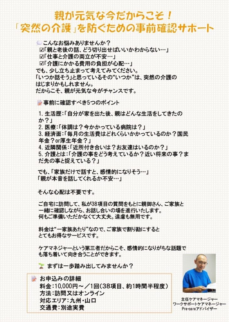 『突然の介護を防ぐための事前確認サポート』